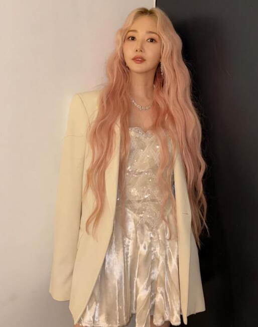 박민영은 화려한 실크 소재의 드레스와 화이트 재킷을 매치해 우아하면서도 세련된 스타일링을 선보였다. 특히 긴 웨이브 핑크빛이 섞인 금발 헤어는 신비로운 분위기를 더하며 감탄을 불러 일으켰다.