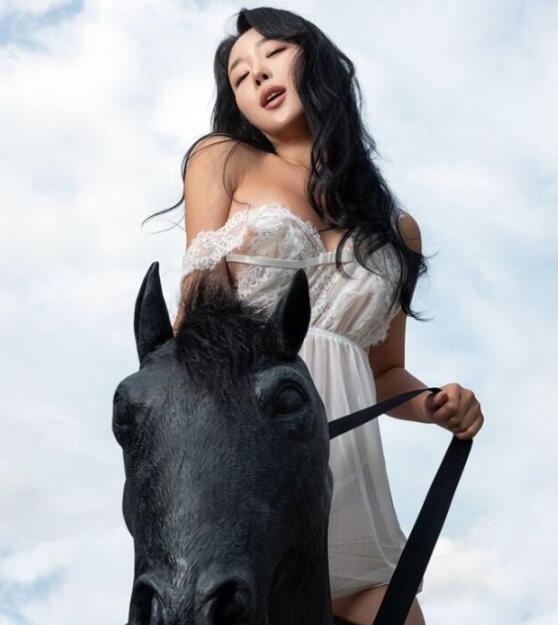 레이스 시스루 원피스를 입고 말 위에 오른 모습은 ‘애마부인’을 떠올리게 했다. 한복 저고리와 베이지 란제리를 매치한 스타일은 ‘뽕’의 이미지를 재현했다.