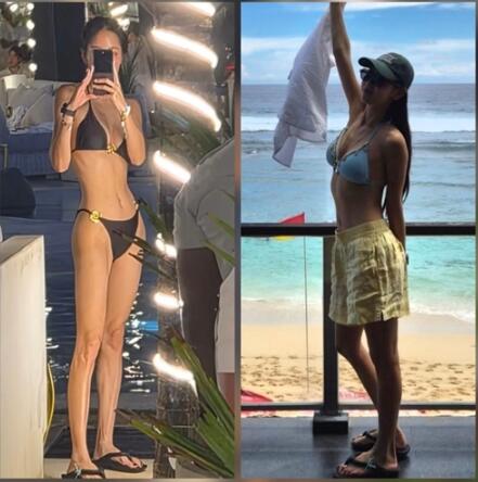 사진 속 그는 선명한 복부 라인과 늘씬한 실루엣을 드러낸 채 자연스럽고 여유로운 분위기를 자아냈다. 블랙 비키니부터 민트 컬러의 스윔웨어까지 다양한 스타일을 완벽하게 소화하며 ‘다이어트 아이콘’다운 면모를 다시 한번 입증했다.