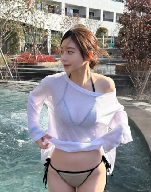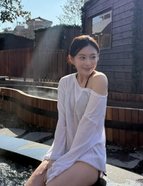 사진 속 그는 야외 스파장에서 비키니를 입고 흰색 시스루 니트를 걸친 채 섹시미를 강조했다.