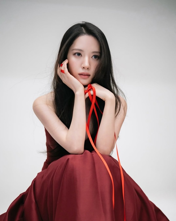 공개된 게시물에는 김지연의 팬미팅 포스터 촬영 현장이 담겨있다. 김지연은 버건디 컬러의 스트랩리스 드레스를 선택했다. 가슴 라인의 리본 디테일이 포인트가 되며, 차분한 색감이 피부 톤을 한층 또렷하게 살린다. 길게 떨어지는 헤어는 과한 연출 없이 자연스럽게 흘러 우아한 분위기를 완성한다.