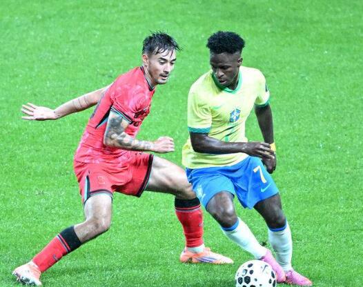 이천수는 “우리가 비니시우스를 최선을 다해 막는데 못 막는거다. 운동능력 자체가 다르다. 남미는 몸도 크고 유연하다. 비니시우스가 이태석 제치는 다섯 번째 골을 봤다. 다 알고도 못 막았다. 드리블을 치는 컨트롤과 방향이 너무 좋다”고 칭찬했다.