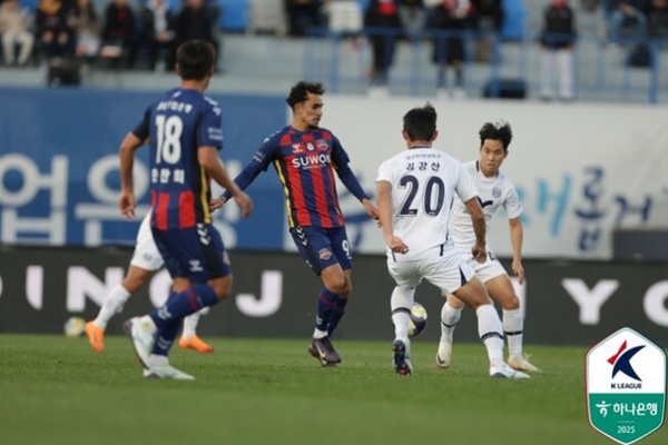 전반 포문은 수원FC가 열었다. 전반 5분 박스 바깥에서 공을 잡은 싸박이 반대편 골문을 보고 왼발 슈팅을 시도했지만 골문 위로 높게 솟았다.