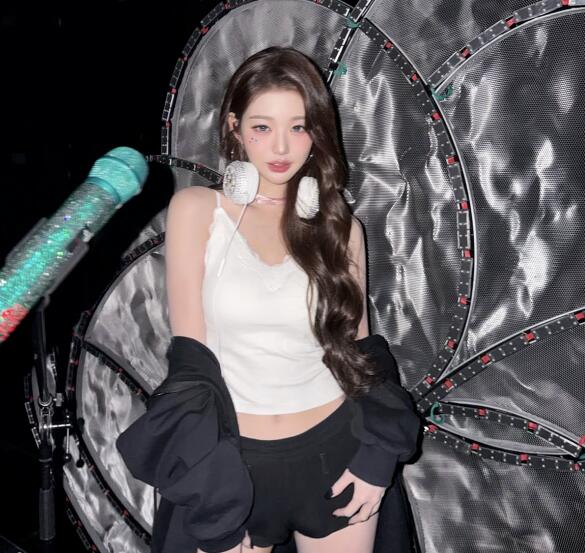 공개된 사진 속 장원영은 란제리 형식의 민소매와 블랙 숏팬츠, 후드 집업을 입고 디제잉을 하고 있는 모습이다. 후드 집업을 살짝 내린 장원영은 윙크와 미소를 지으며 섹시하면서도 러블리한 매력을 발산했다.