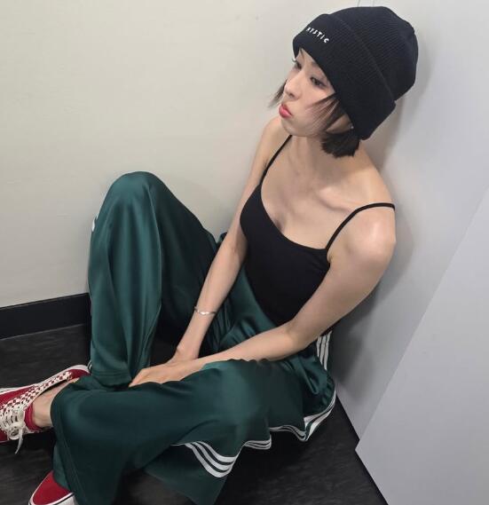이다희는 16일 자신의 인스타그램에 사진을 여러장 게재, 아이돌 느낌이 나는 스타일링을 선보였다. 그는 심플한 블랙 슬립 톱에 짙은 에메랄드 컬러의 와이드 트레이닝 팬츠를 매치해 대비감 있는 실루엣을 완성했다. 슬림한 상의와 루즈한 하의의 조합이 세련된 균형감을 만들어내며, 편안하면서도 감각적인 분위기를 자아냈다.