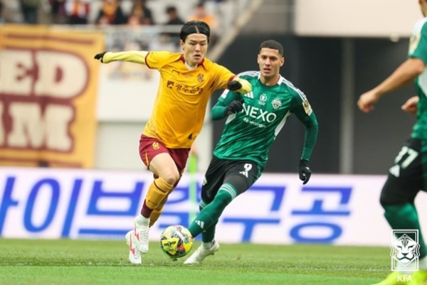 광주도 반격했다. 전반 20분 주세종의 프리킥을 진시우가 헤더로 연결했지만 김정훈이 잡았다. 전반 30분엔 프리드욘슨이 역습 상황에서 측면 돌파에 나섰으나 홍정호가 막았다. 팽팽한 흐름이 이어졌으나 뚜렷한 장면이 나오진 않았다.