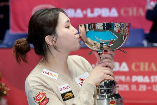 6일 경기도 고양시 ‘고양 킨텍스 PBA 스타디움’에서 열린 프로당구 2025-26시즌 8차투어 ’하림 PBA-LPBA 챔피언십‘ LPBA 결승서 김민아(NH농협카드∙35)를 상대로 풀세트 끝에 세트스코어 4:3(11:9, 11:4, 11:1, 3:11, 9:11, 7:11, 9:8)으로 승리했다.