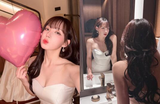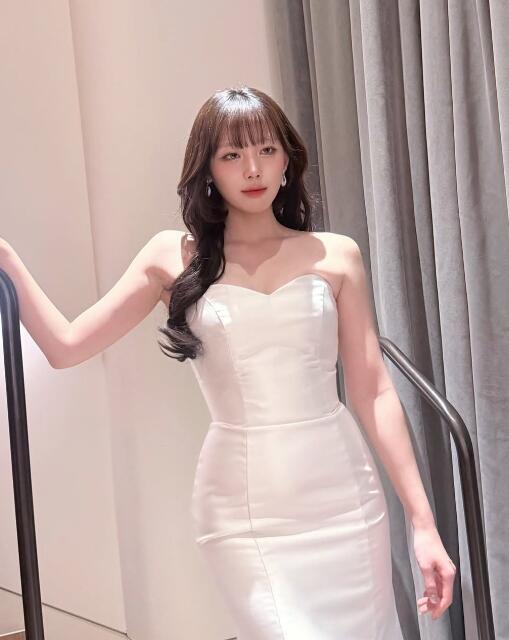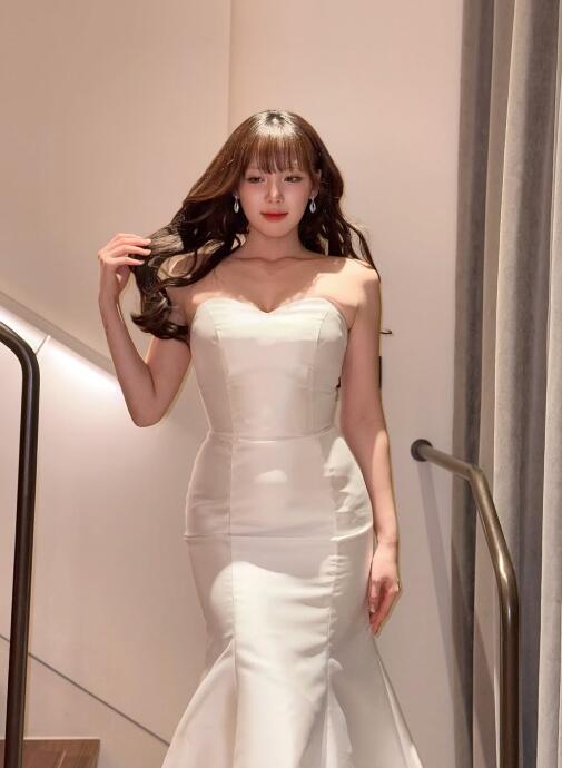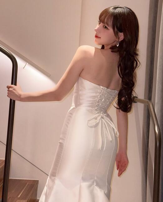 뒷모습을 담은 사진에서는 코르셋 디테일이 돋보이는 드레스의 뒷태가 고스란히 드러나 시선을 집중시켰다.