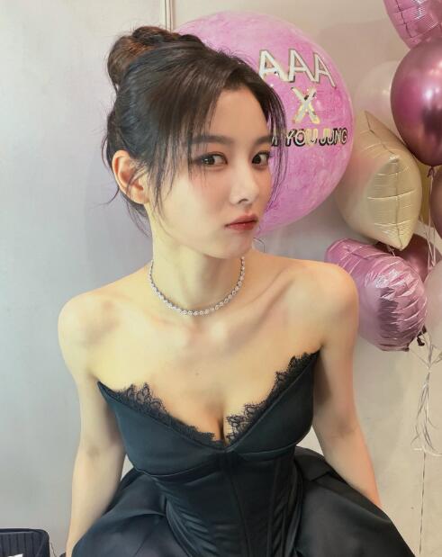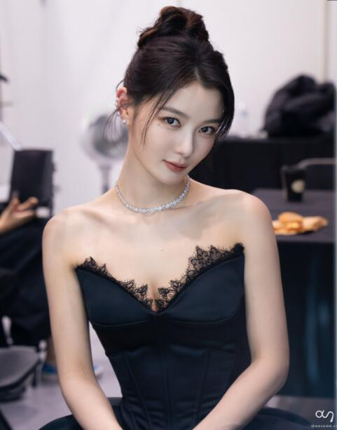 사진 속 김유정은 과감한 오프숄더 스타일의 블랙 드레스를 입고 다양한 포즈를 취했다. 다이어트 성공 후 더욱 선명해진 쇄골라인과 어깨라인을 드러내며 드레스를 완벽하게 소화했다. 군더더기 없는 실루엣의 드레스와 다이아몬드 형태의 초커 네크리스가 조화를 이루며 세련된 매력을 더했다. 업스타일 헤어에 자연스럽게 흘러내린 잔머리는 부드러운 분위기를 자아냈다.