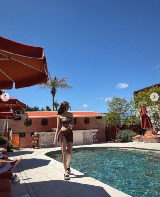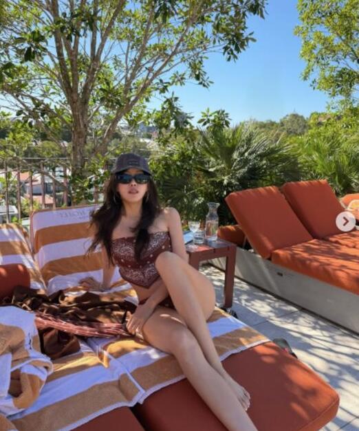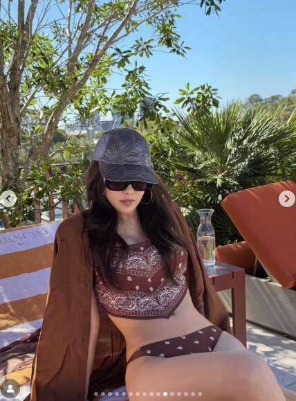 브라운 톤의 패턴 비키니를 입은 효민은 선베드에 앉아 늘씬한 각선미와 탄탄한 보디라인을 드러냈다. 또 다른 사진에서는 수영장 가장자리를 걷는 모습으로 건강미 넘치는 실루엣을 자랑해 감탄을 자아냈다.